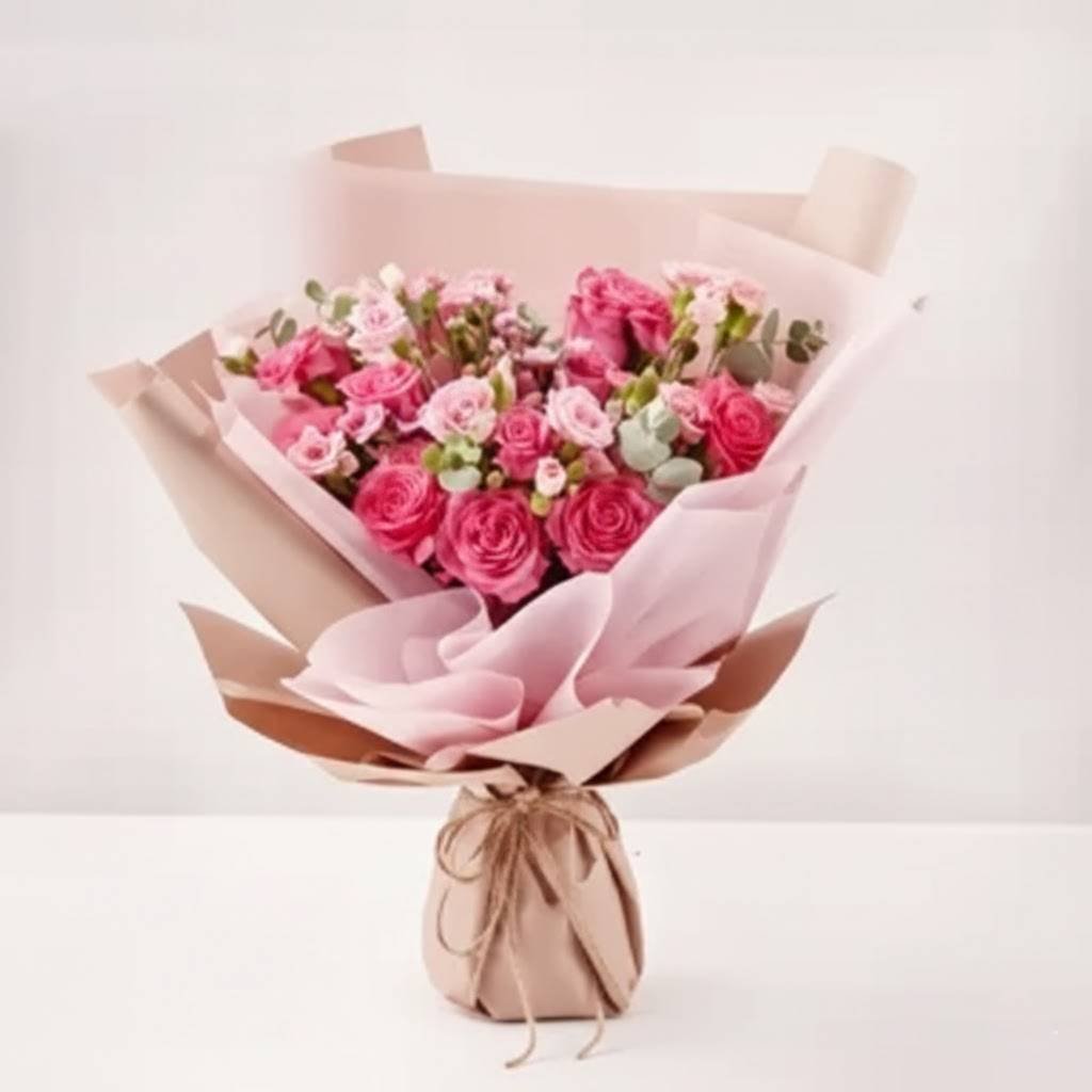 Soft, elegant, and full of heartfelt charm, the Birthday Wish Carnations Bouquet is a beautiful expression of love and celebration. Featuring a delightful mix of dark pink and light pink spray carnations with fresh eucalyptus accents, this handcrafted bouquet by Warda Petals is beautifully wrapped in jute for a natural and premium look—perfect for making birthdays extra special.