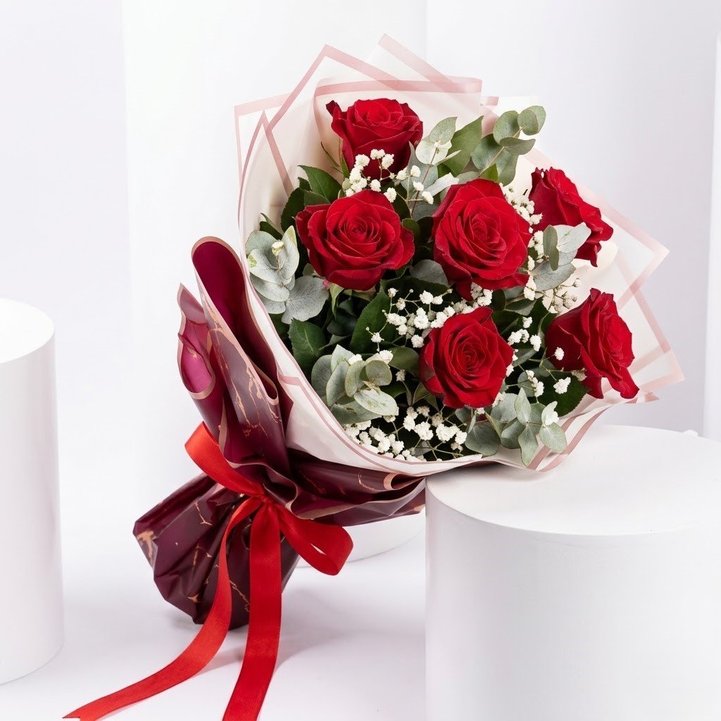 Each Bouquet of 6 Beautiful Roses is carefully handcrafted and wrapped with attention to freshness, elegance, and presentation to create a memorable floral gifting experience.