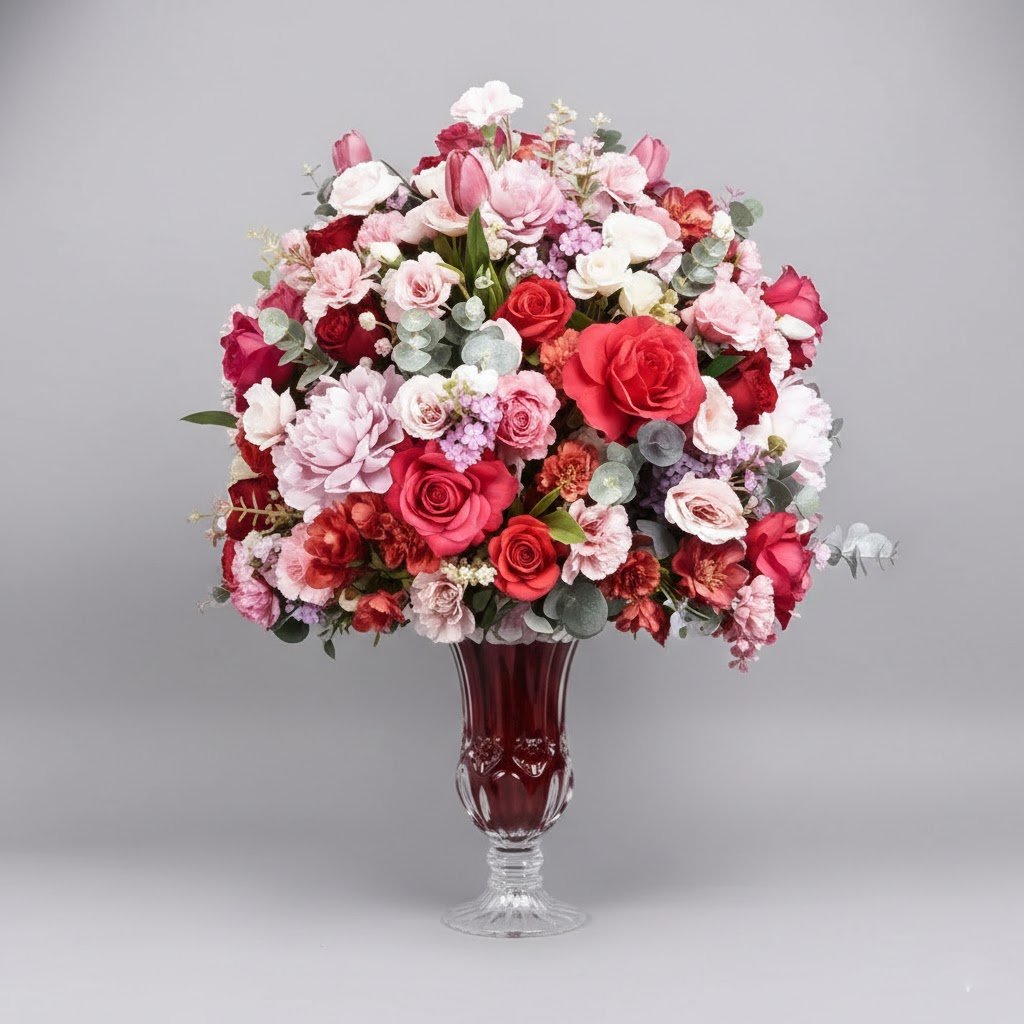 Luxurious, vibrant, and beautifully captivating, the Flowers Glory Arrangement is a grand floral masterpiece designed to make a lasting impression. Featuring an exquisite blend of roses, tulips, hydrangeas, lisianthus, and premium seasonal fillers, this arrangement showcases a stunning harmony of colors and textures. Expertly arranged in a stylish glass vase, this handcrafted floral creation by Warda Petals brings elegance, beauty, and celebration to any special occasion.
