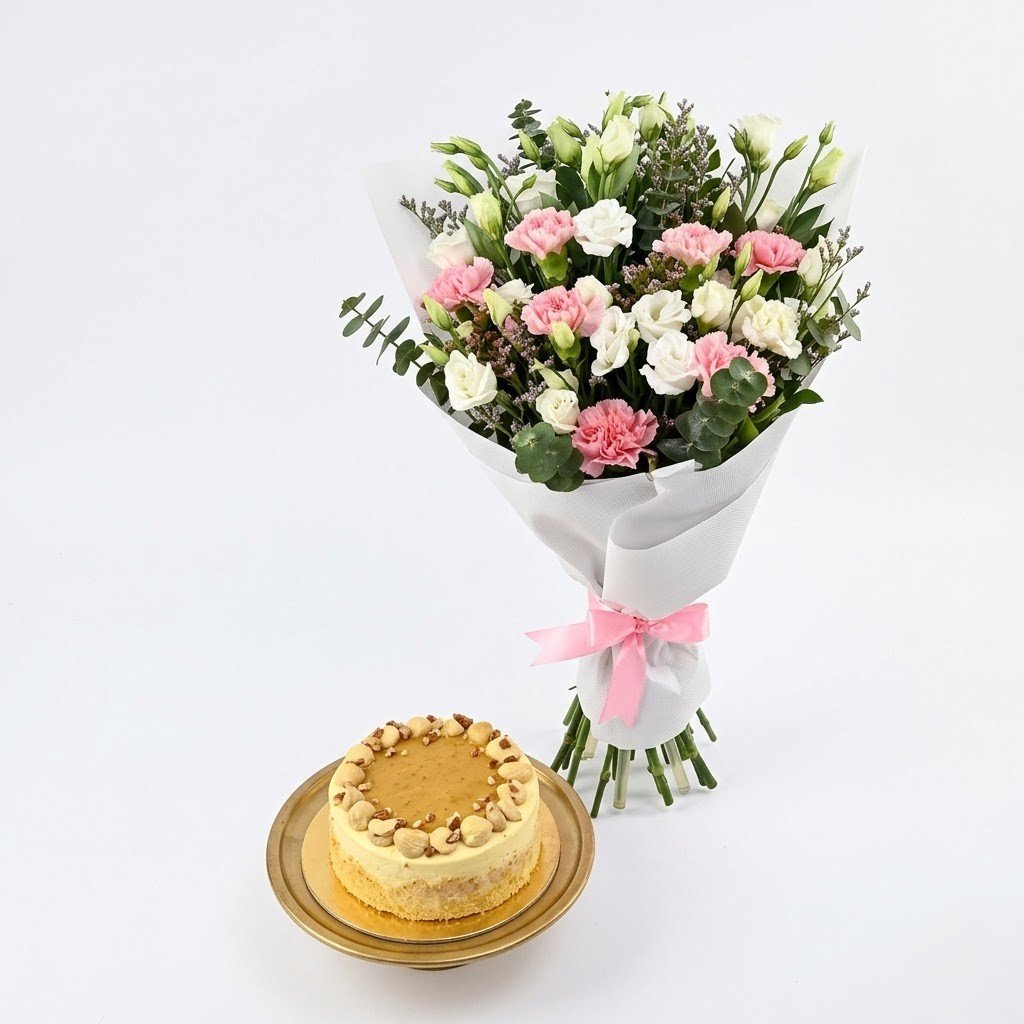 Freshly prepared cake paired with handpicked blooms, delivered with care for a wholesome gifting experience.